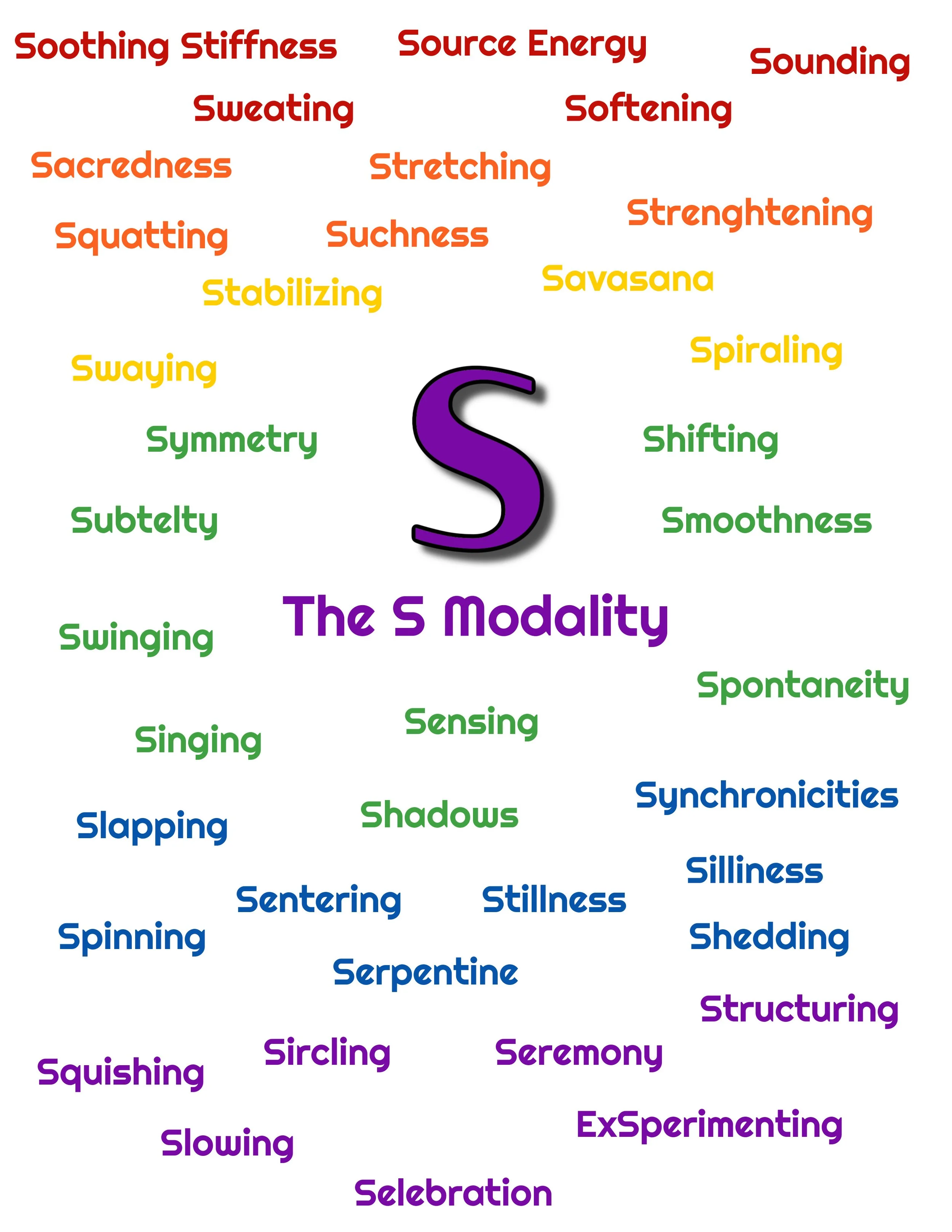 Next, set 1-3 intentions for today’s practice of the S Modality. Perhaps choose 3 words from the list below to focus on.